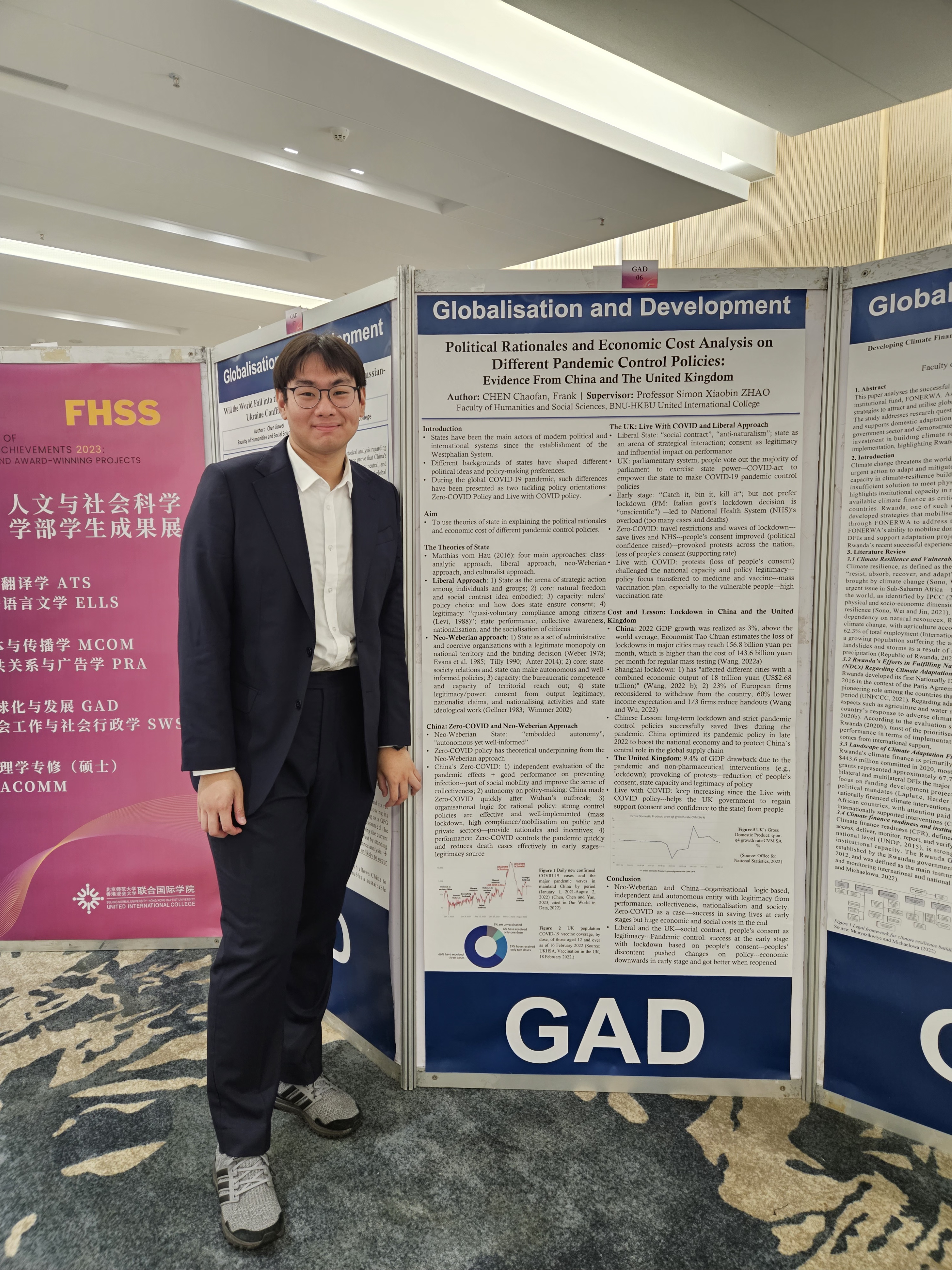 Chaofan’s award-winning FYP is titled “Political Rationales and Economic Cost Analysis on Different Pandemic Control Policies: Evidence from China and The United Kingdom”, as it showcased originality, creativity, and critical thinking skills.