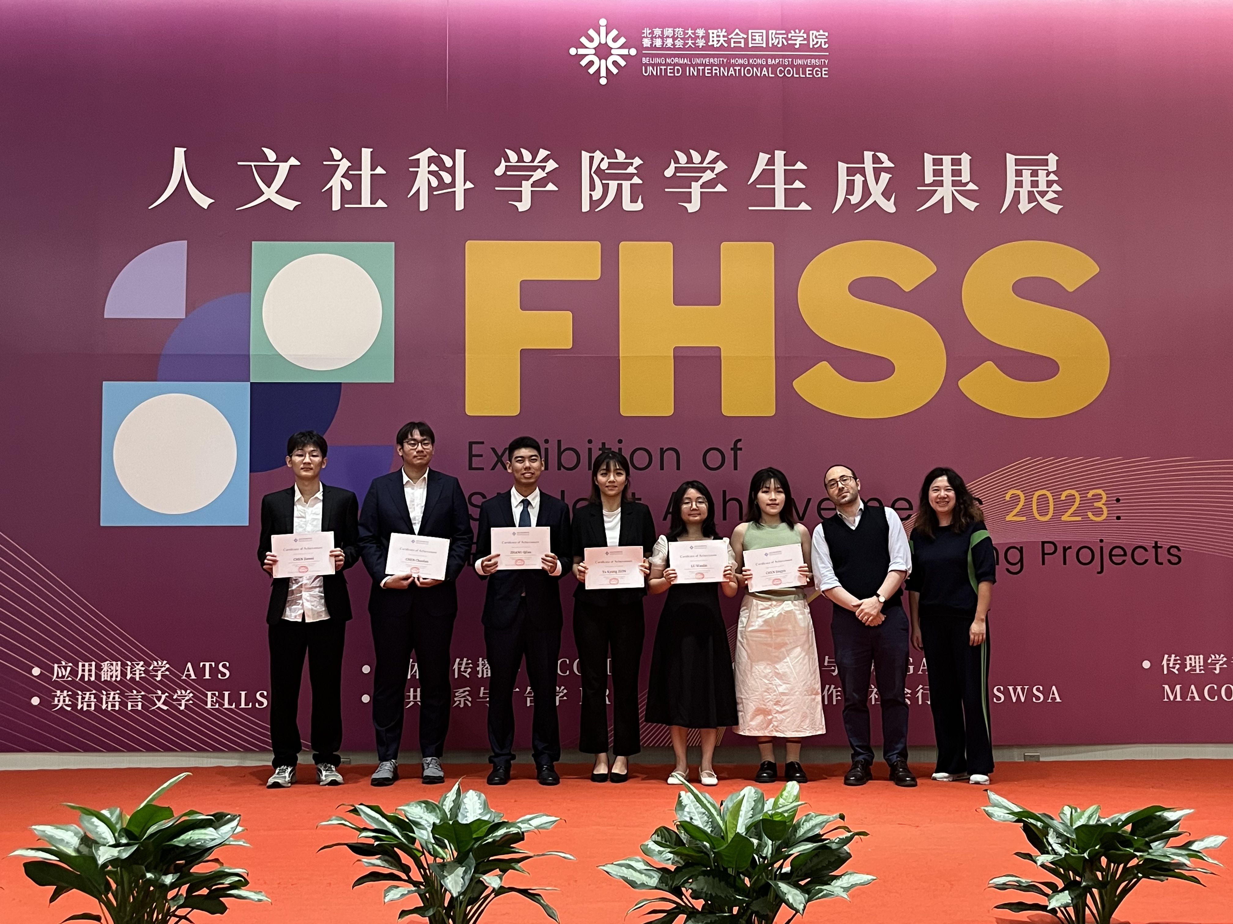 On May 17, 2023 the Faculty of Humanities and Social Sciences (FHSS) held FHSS Exhibition of Student Achievements 2023: Best FYPs and Award-Winning Projects. Seven senior GAD students who excelled in their respective FYP projects presented their posters and received awards: Ms. Yu Kyung JEON, Ms. Deng Ziwen, Ms. Lu Wanlin, Ms. Chen Jingyu, Mr. Zhang Qifan, Mr. Chen Chaofan, and Mr. Chen Jiawei.
